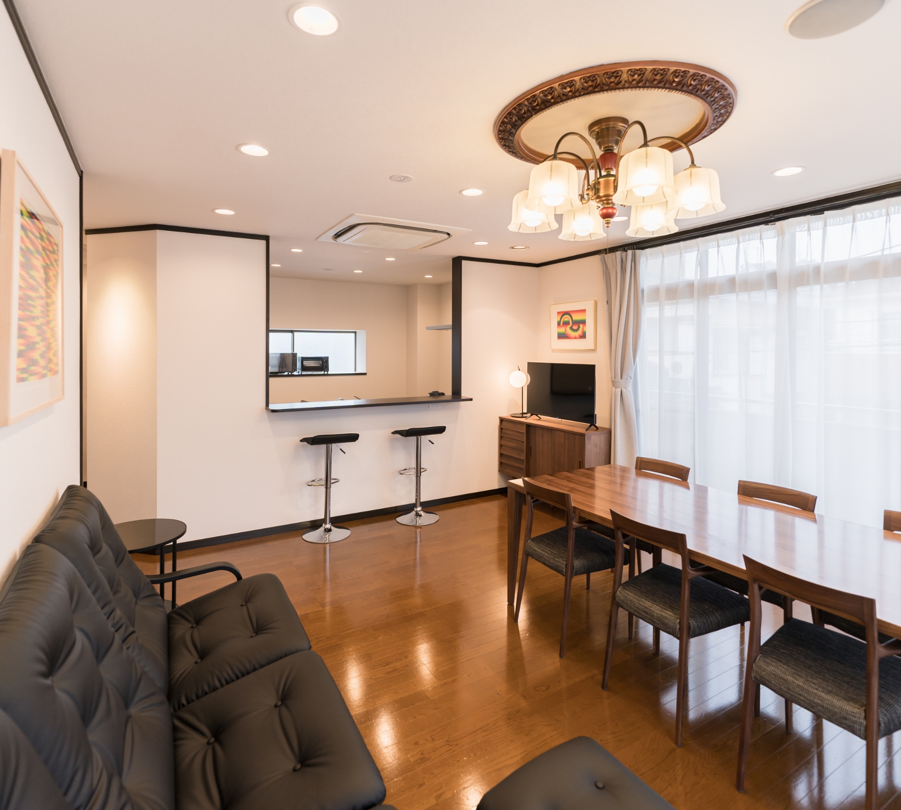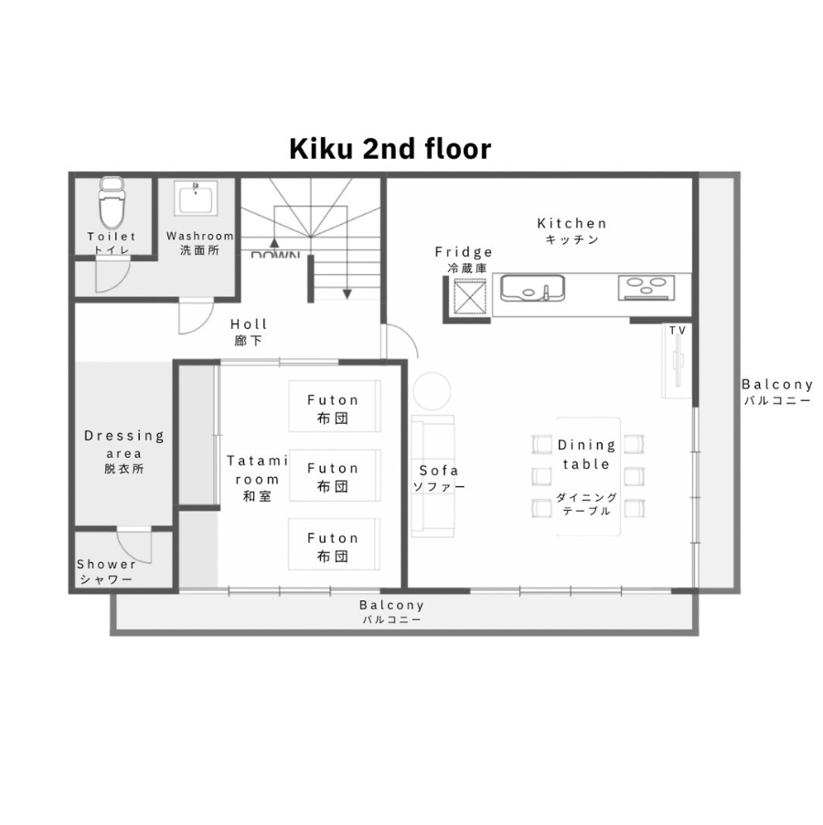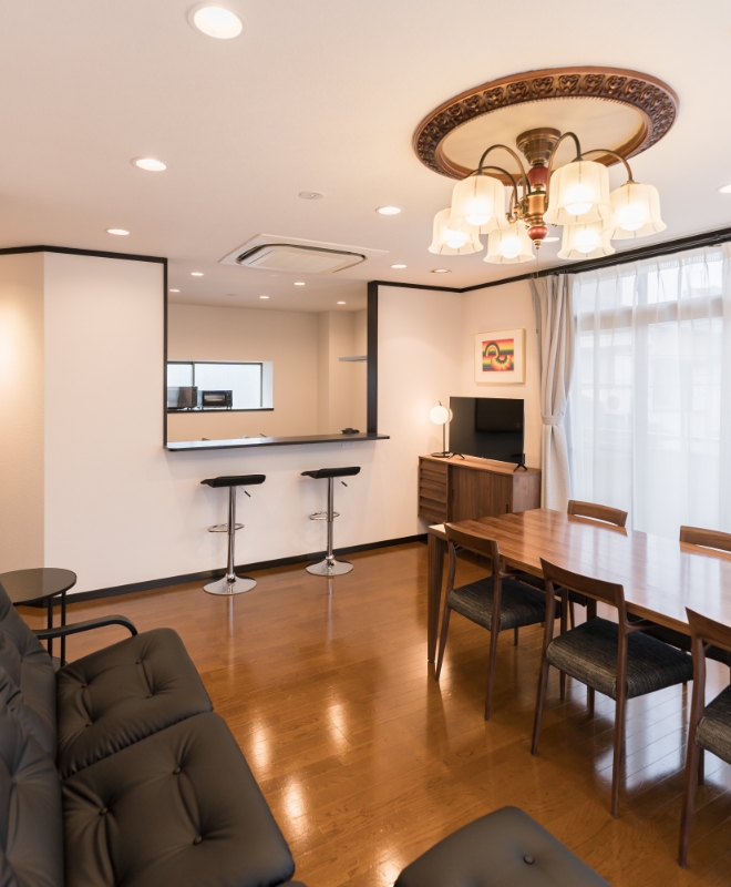 - フェイスタオル、バスタオル、キッチン、冷蔵庫、洗濯機、乾燥機、エアコン、ガスヒーター、電子レンジ、トースター、電気ケトル、炊飯器、ヘアドライヤー、ヘアアイロン、傘、薄型テレビ、専用バスルーム(ビデ、無料バスアメニティ付)が備わります。