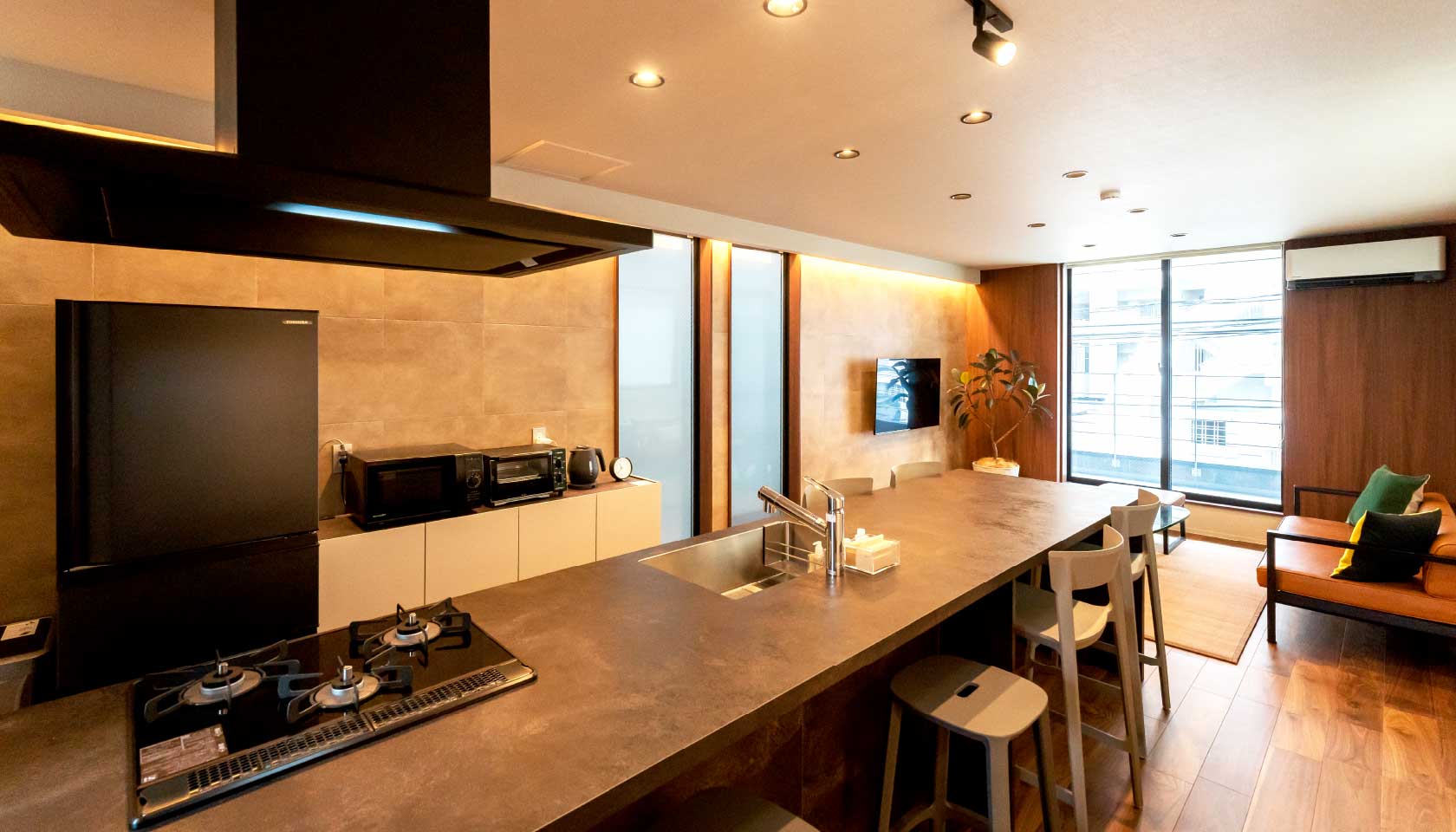 充実したキッチン設備とランドリー施設を備えており、中長期の滞在でも快適に過ごせます。ゆったりとしたくつろぎの時間と、豊かな体験をお楽しみください。